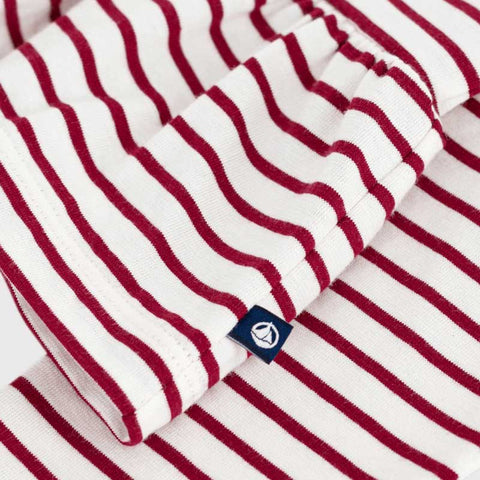 Marinière della Linea Abbigliamento Bambina Petit Bateau in jersey leggero, un materiale morbido e confortevole dalla buona tenuta. Taglio ampio grazie al volant in fondo.