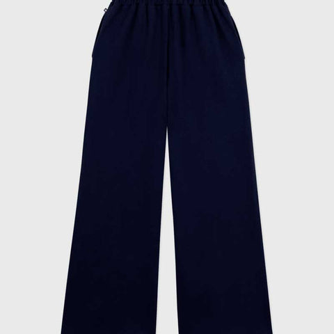 Pantaloni della LInea Donna Petit Bateau in jersey doppio, un tessuto spesso dalla buona tenuta. Taglio ampio e svasato a fondo gamba. Modello perfetto per la città, in un tessuto comodo. Vita alta elasticizzata dietro. Tasche nelle cuciture laterali. Impunture al centro della gamba per tutta la lunghezza dei pantaloni.