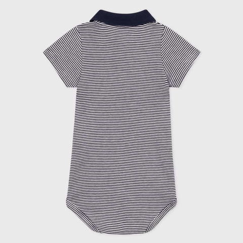 Body a maniche corte della Linea Abbigliamento Bambino Petit Bateau a costina, un tessuto estensibile e comodo, iconico di Petit Bateau. Simpatico con il colletto a polo! Apertura con bottoni automatici sul davanti e sul cavallo per una facile vestibilità.