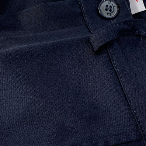 Pantalone della linea abbigliamento bambino Ambarabà, elegante in tessuto lucido a tinta unita, con taschine sul davanti.