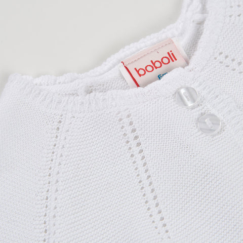 Bolero in maglia della Linea Abbigliamento Bambina Boboli, con chiusura a bottoni e scollo rotondo.