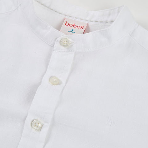 Camicia della Linea Abbigliamento Bambino Boboli, con colletto alla coreana e bottoni sulle maniche per fare risvoltini.