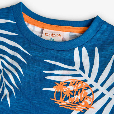 Maglietta della Linea Abbigliamento Bambino Boboli, con fantasia tropicale in contrasto di colore .