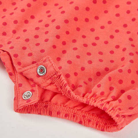 Pagliaccetto della Linea Abbigliamento Bambina Boboli, con apewrtura sul fondo e sulle spalline. Modello a canotta con fantasia a pois all-over.