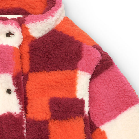 Giacca in lanetta della Linea Abbigliamento Bambina Tuc Tuc, con fantasia geometrica a quadri e chiusura con bottoni.
