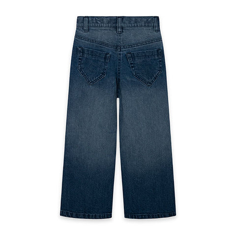 Pantalone denom della Linea Abbigliamento Bambina Tuc Tuc, collezione Sea Lovers, modello a palazzo con ricami sul davanti.