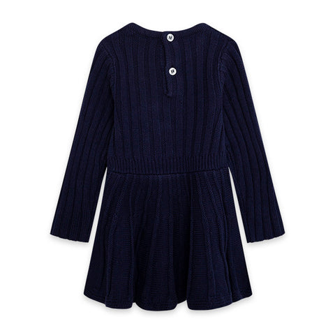 Abitino in tricot della linea abbigliamento bambina Tuc Tuc, collezione Hello London. on taglio in vita e applicazione ricamata a cuore.