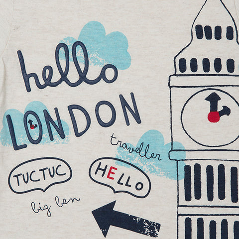 T-shirt della linea abbigliamneto bambino Tuc Tuc, collezione Hello London. Con stampa colorata sul davanti e bottoncini a pressione sulla spallina.