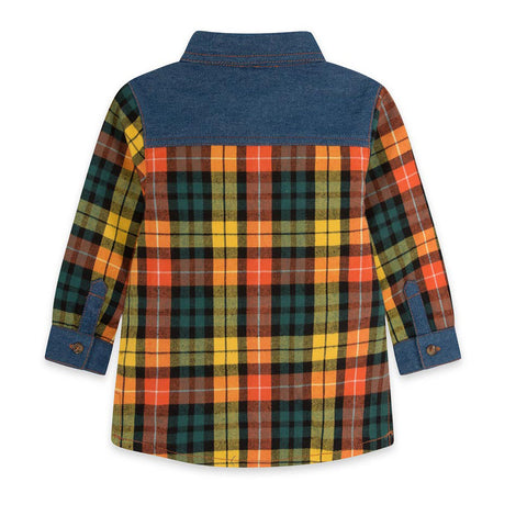 Hemd aus der Tuc Tuc Childrenswear Line, aus Flanell mit mehrfarbigem Karomuster. Kragen und Details aus Denim.