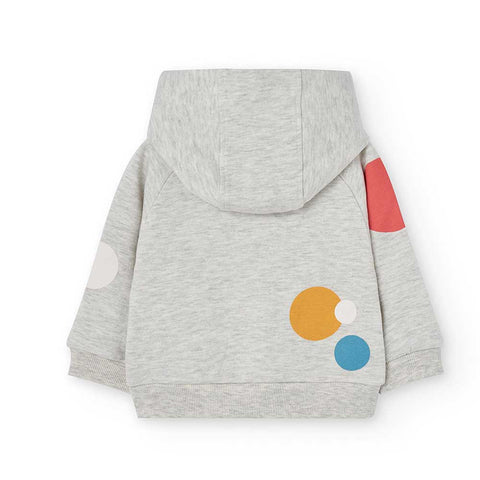 Felpa con cappuccio della Linea Abbigliamento Bambina Boboli, con  pois all over su fondo grigio.