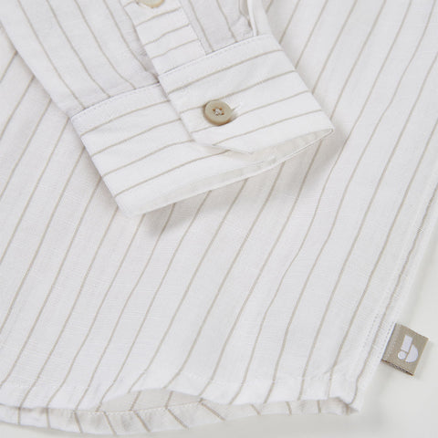 Camicia in lino della Linea Abbigliamento Bambino Boboli, con fantasia a micro righe e colletto alla coreana.