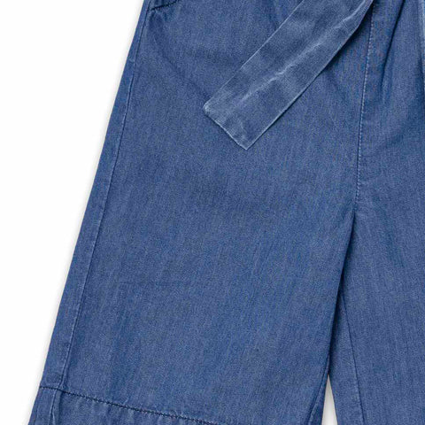 Palazzo-Hose aus der Kinderbekleidungslinie Tuc Tuc, Jeansfarbe, mit Riemen und elastischem Bund.