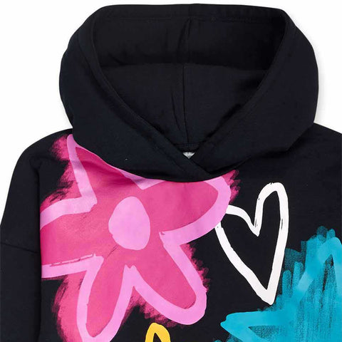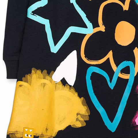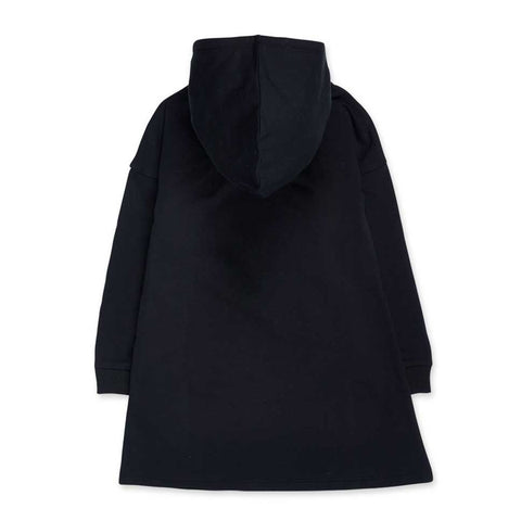 Unifarbenes Sweatshirt-Kleid mit Kapuze aus der Kinderbekleidungslinie Tuc Tuc mit Aufdrucken in fluoreszierenden Farben auf der Vorderseite.