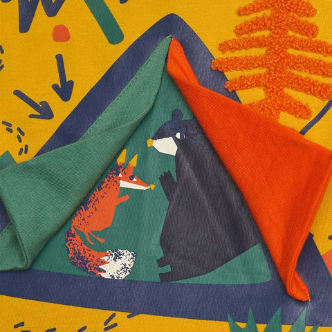 Langarmshirt aus der Kinderbekleidungslinie Tuc Tuc, mit Stoffapplikationen zum Spielen auf der Vorderseite.