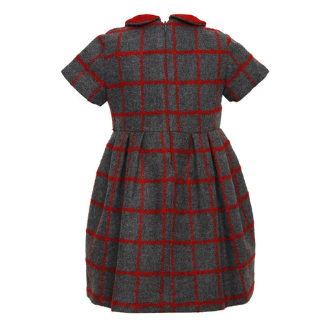 Kleid aus der Ambarabà-Mädchenkollektion mit roten Karos. Kragen