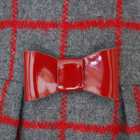 Kleid aus der Ambarabà-Mädchenkollektion mit roten Karos. Kragen in einfarbigen Streifen. Schleife aus Lederimitat in der Taille. Plissierter Rock. Verschluss mit Reißverschluss auf der Rückseite.