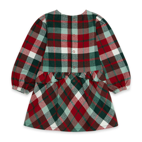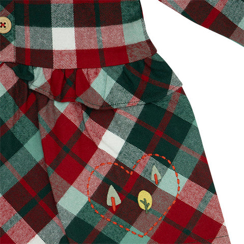 Flanellkleid aus der Mädchenkollektion Tuc Tuc, Highlands Kollektion mit schottischem Muster, hinten mit Druckknöpfen geschlossen.