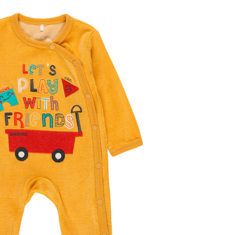 Jumpsuit aus der Boboli-Kinderbekleidungslinie, aus Chenille, mit Applikationen und Stickereien auf der Vorderseite. Seitliche Knopfleiste.