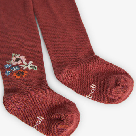Strumpfhose aus der Boboli-Kinderkollektion, mit brauner Unterseite und kleinem Blumenmuster in Kontrastfarbe.