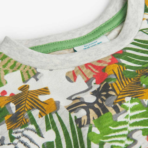 T-Shirt aus der Boboli-Kinderbekleidungslinie mit buntem Puzzlemuster. Kleines Logo auf der Unterseite.