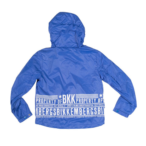 Jacke aus der Kinderlinie Bikkembergs, winddicht, mit Reißverschluss und Kapuze. Innen gefüttert und mit kontrastfarbiger Rückenbedruckung.