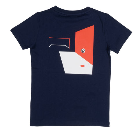T-Shirt aus der Bikkembergs Kids' Clothing Line, mit Logo auf der Vorderseite und kontrastfarbigem Druck auf der Rückseite.