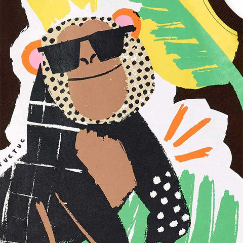 Canotta der Kinderbekleidungslinie Tuc Tuc, mit Safari-Aufdruck auf dunklem Hintergrund.
