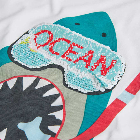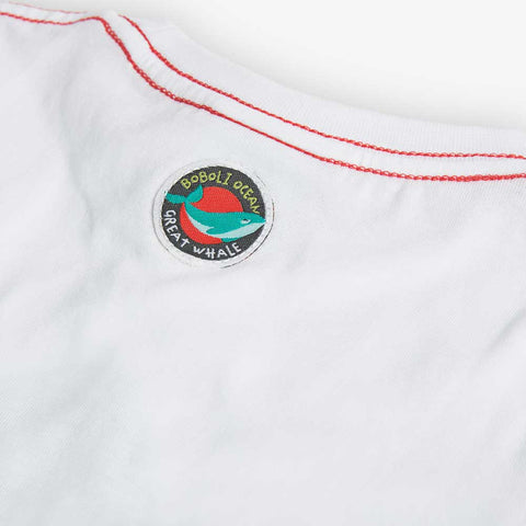 T-Shirt aus der Boboli Kinderbekleidungslinie, mit buntem Druck auf der Vorderseite und farbiger Paillettenapplikation.