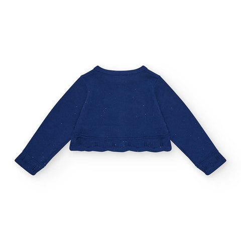 Strickjacke aus der Tuc Tuc Girls' Clothing Line, elegant und mit einem kurzen Modell, das mit Lurex unterstrichen ist.