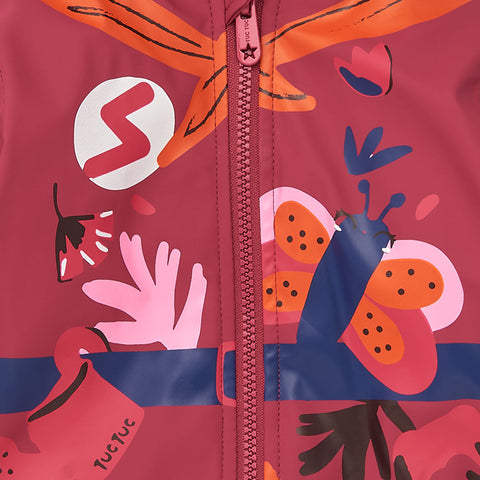 Cerata aus der Tuc Tuc Kinderbekleidungslinie, mit Fleece auf der Innenseite und Kapuze mit Augenaufdruck, Taschen an den Seiten.