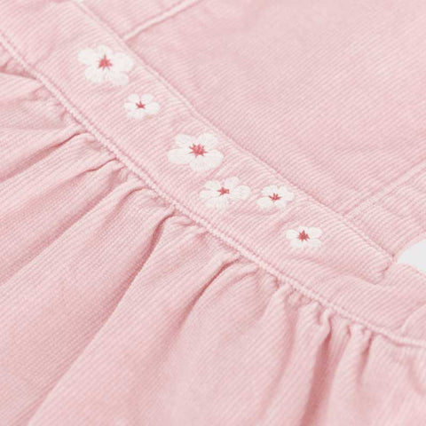 Kleid aus der Petit Bateau Mädchenbekleidungslinie aus Cord, bequem und trendig, ideal für den Winter. Ärmelloses und unwiderstehliches Modell mit gerafftem Rock und verstellbaren gekreuzten Trägern.