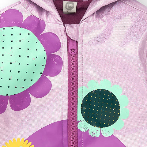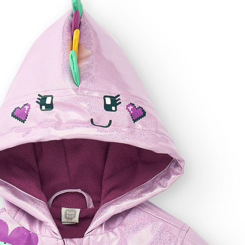 Cerata aus der Tuc Tuc Kinderbekleidungslinie, mit Fleece-Innenseite und Kapuze. Färbung mit Glitzereffekt.
