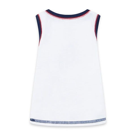 Tanktop aus der Tuc Tuc Girl's Clothing Linie, Sub Marine Kollektion, mit Aufdruck auf der Vorderseite und Ziernähte in Kontrastfarbe.
