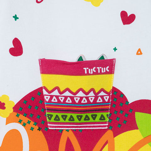 Langarm-T-Shirt aus der Linie Tuc Tuc Girl's Clothing, Fancactus-Kollektion. Mit Tasche und schöner wattierter Applikation auf der Vorderseite. Verschluss auf der Rückseite mit Druckknopf.