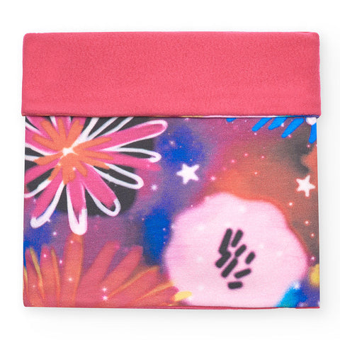 Halswärmer aus der Tuc Tuc Girls' Clothing Line, mit Fleece auf der Innenseite und fluoreszierendem Muster auf fuchsiafarbenem Hintergrund.