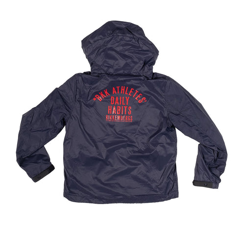 Bikkembergs Child's Line Jacke, winddicht, mit Reißverschluss und Kapuze. Innen Mesh und Druck auf dem Rücken in Kontrastfarbe.