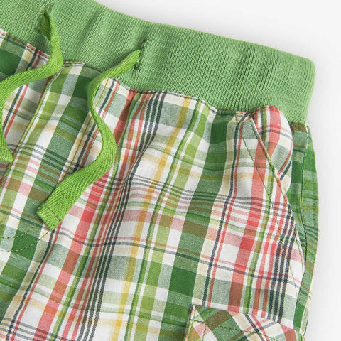 Shorts aus der Boboli Kinderbekleidungslinie, mit seitlichen Taschen mit Spulen. Elastischer Bund mit Bindebändern und Allover-Karomuster.