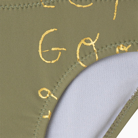 Badeslip aus der Tuc Tuc Girl's Clothing Line mit Fransen an den Seiten und Details einseitig vergoldet.