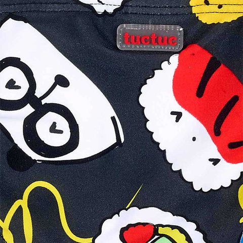 Bade-Slip aus der Kinderbekleidungslinie Tuc Tuc, mit Sushi-Allover-Muster.