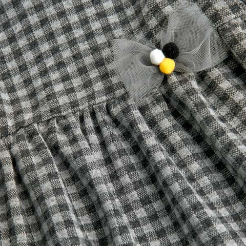 Kariertes Kleid aus der Boboli-Kleidungslinie für Mädchen, mit Samtbesatz unten und Knopfleiste hinten.