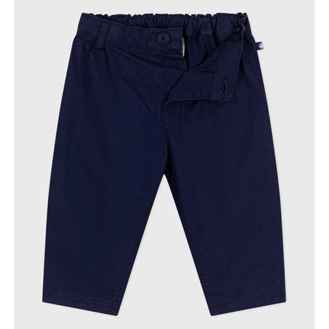 Pantaloni della Linea Abbigliamento Bambino Petit Bateau in serge, un tessuto morbido e piacevole addosso. Il compromesso ideale tra morbidezza e buona tenuta. Comoda fascia elastica con passanti in vita e bottone sul davanti, per una facile vestizione.