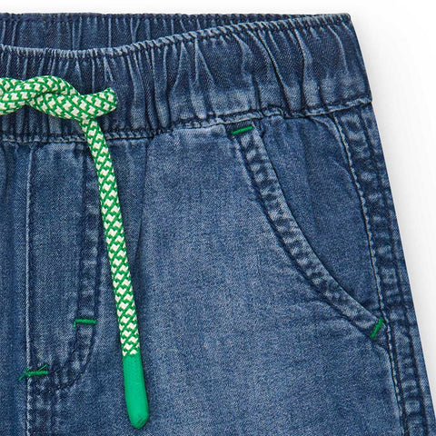 Tuc Tuc Children's Clothing Line Bermuda shorts, made of dark wash jeans with elastic and drawstrings at the waist.