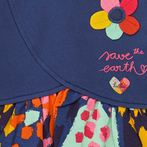Dress from the Tuc Tuc Girls' Clothing Line, with a wide patterned skirt and a solid color top.