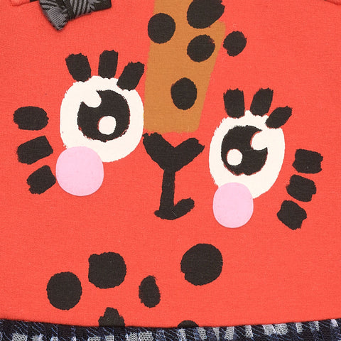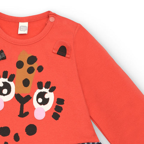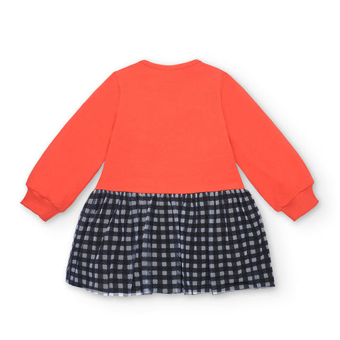 Little dress from Tuc Tuc Girl's Clothing Line with plush upper part with buttons on the spalal and contrasting color print. The wide gionna has checked tulle on the outside.