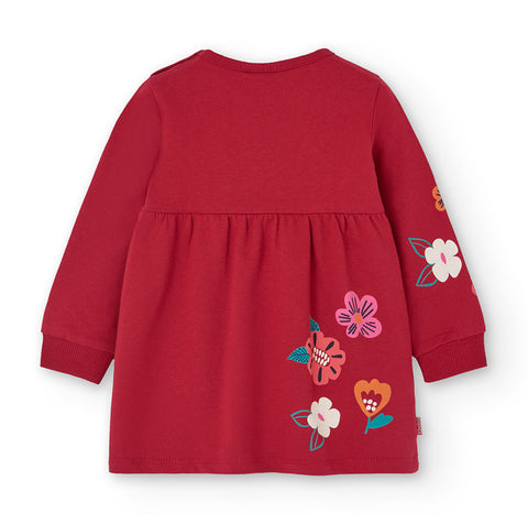 Plush dress from the Boboli Children's Clothing Line, with cut-out waist and small floral pattern prints on a burgundy background.