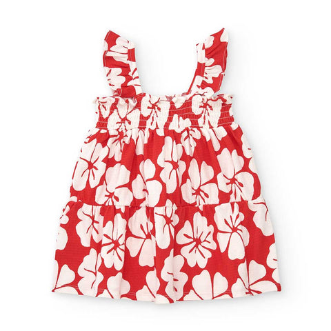 Little dress from the Tuc Tuc Girls' Clothing Line, made of crepe with a hibiscus pattern in contrasting color.
