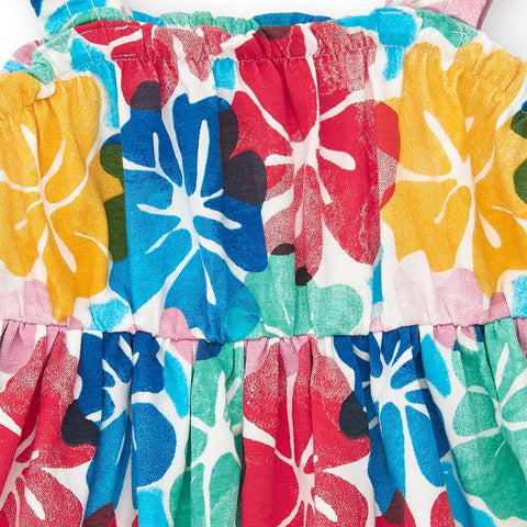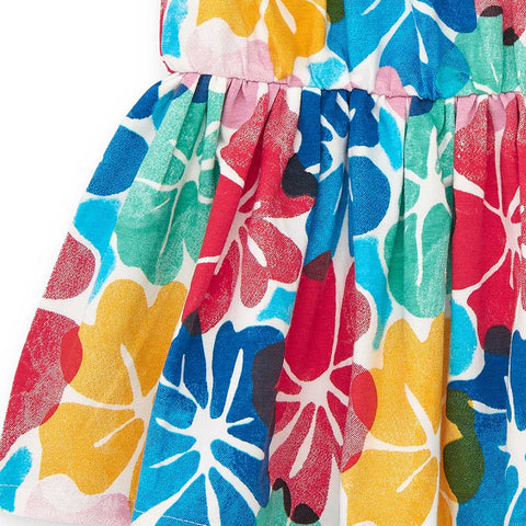 Little dress from the Tuc Tuc Girls' Clothing Line, with an all-over multicolor hibiscus pattern.