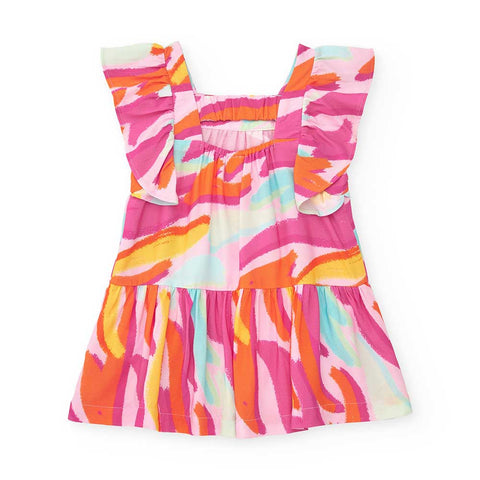 Dress from the Tuc Tuc Girls' Clothing Line, with ruffles on the straps and an all-over neon color pattern.