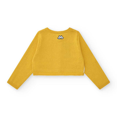 Cardigan from the Tuc Tuc Girls' Clothing Line with a short cut and floral pattern on one side.