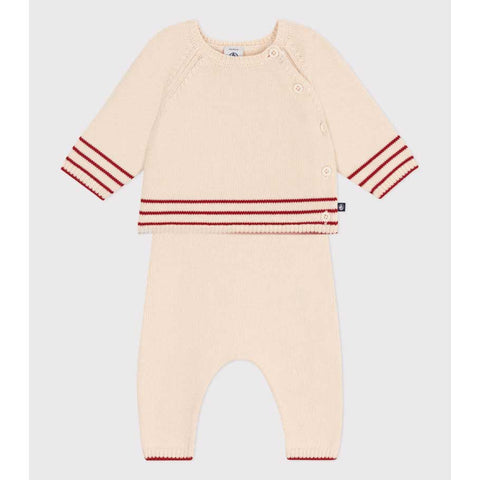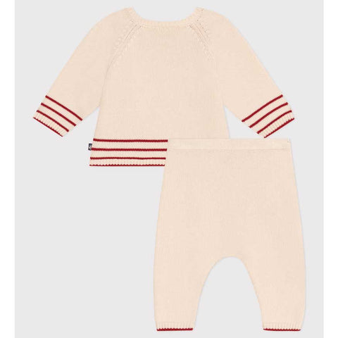 Cardigan e pantaloni unisex della Linea Abbigliamento Petit Bateau in maglia di cotone, un materiale che dona morbidezza e comfort.